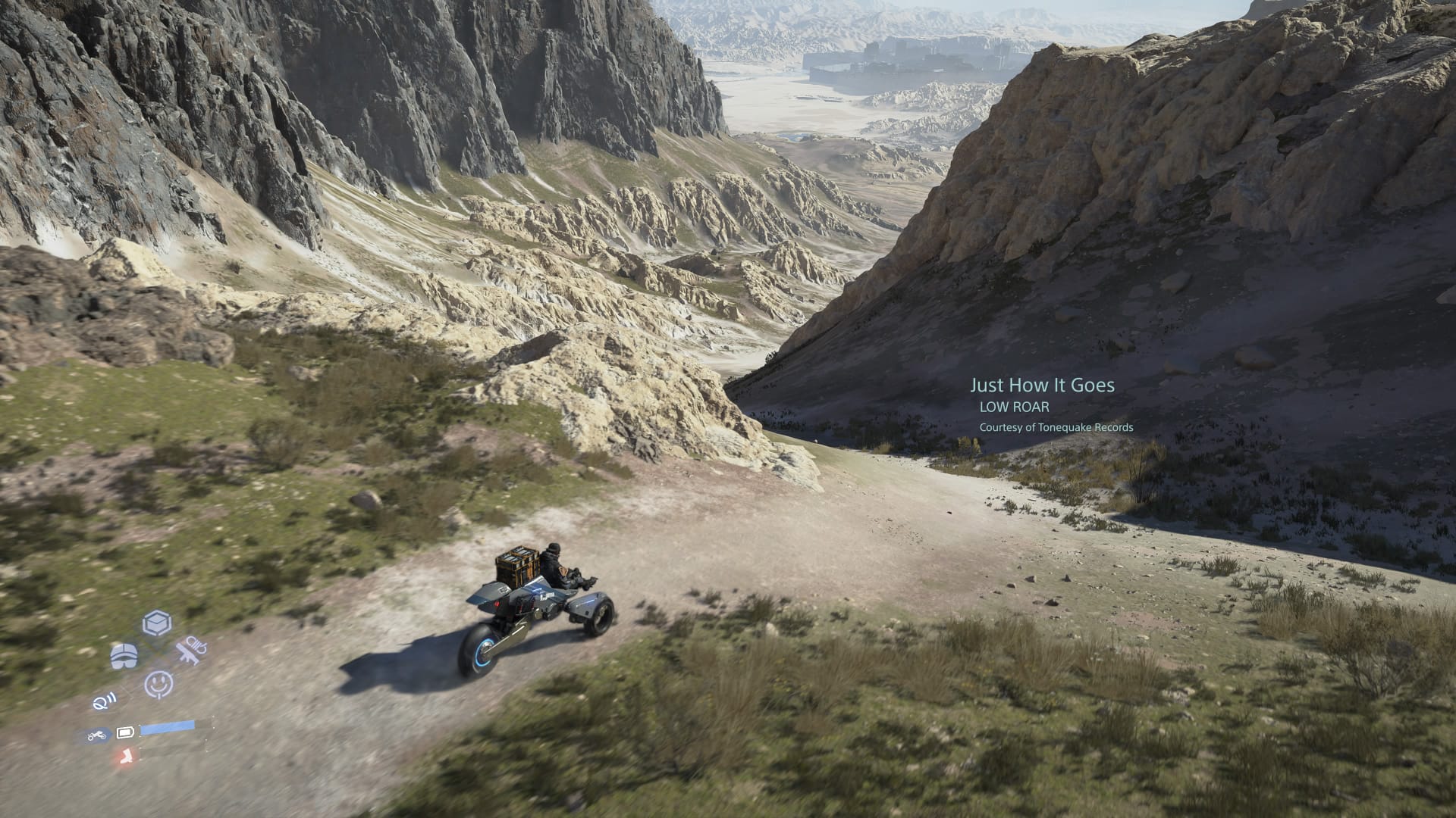 Et au niveau de la baston, les combats sont bien plus fluides que dans le premier opus, tout en étant complétement négligeables. Il n’y a aucune difficulté et aucun besoin de se préparer. Je me suis amusé à nettoyer toutes les bases de brigands en utilisant mes poings et, comme déjà dit, n’ai préparé aucun combat de boss. De même, aucune peur de croiser des BTs qu’on peut de toute façon éviter en moto la plupart du temps. Oui c’est plus accessible, mais ça perd sacrément de son intérêt. Ceci dit, on ne joue pas à Death Stranding pour les combats, donc soit, ce n’est pas si dérangeant s’ils deviennent anecdotiques. Ah et maintenant on peut capturer des BTs géants pour les utiliser comme des pokemons. C’est ça le futur, monsieur.