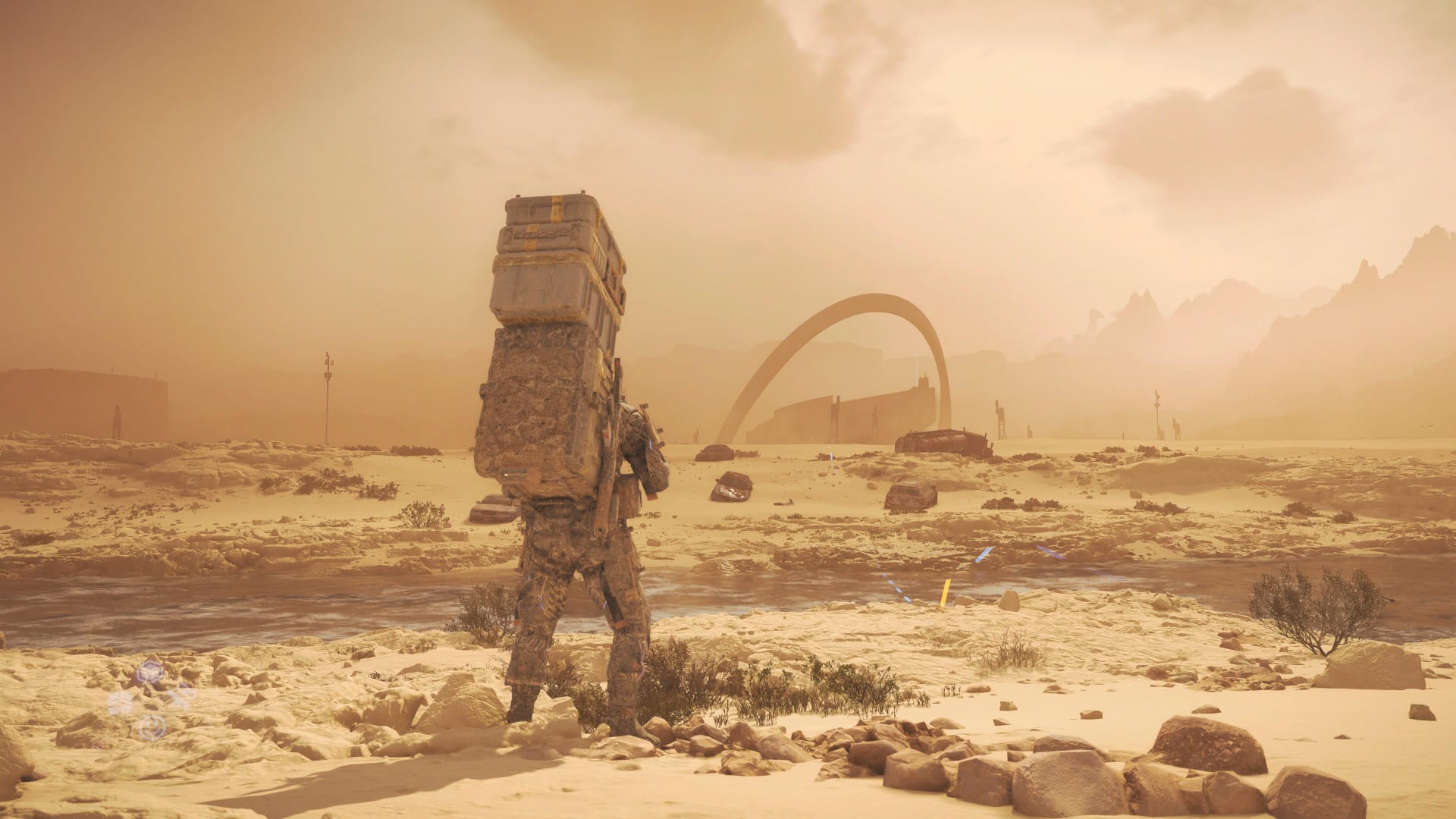 Je vous mets plusieurs sujets en un, parce qu’en fait j’ai peu à dire. A la fois le nouveau continent est une réussite dans sa modélisation et vous laissera scotché devant les prouesses techniques de votre PS5 plus ou moins pro et à la fois, ben bof, ça n’a pas le charme du premier opus, encore une fois. Vous me direz ce que vous voulez, mais les décors de l’Australie de Death Stranding 2 ne touchent pas le début du premier poil de la cheville des allures islandaises de DS1. Et là aussi la diminution de la sensation d’hostilité et d’isolement se fait sentir. Sam est en vacances, il y a du sable, des kangourous et des espèces de méduses volantes. Super.
